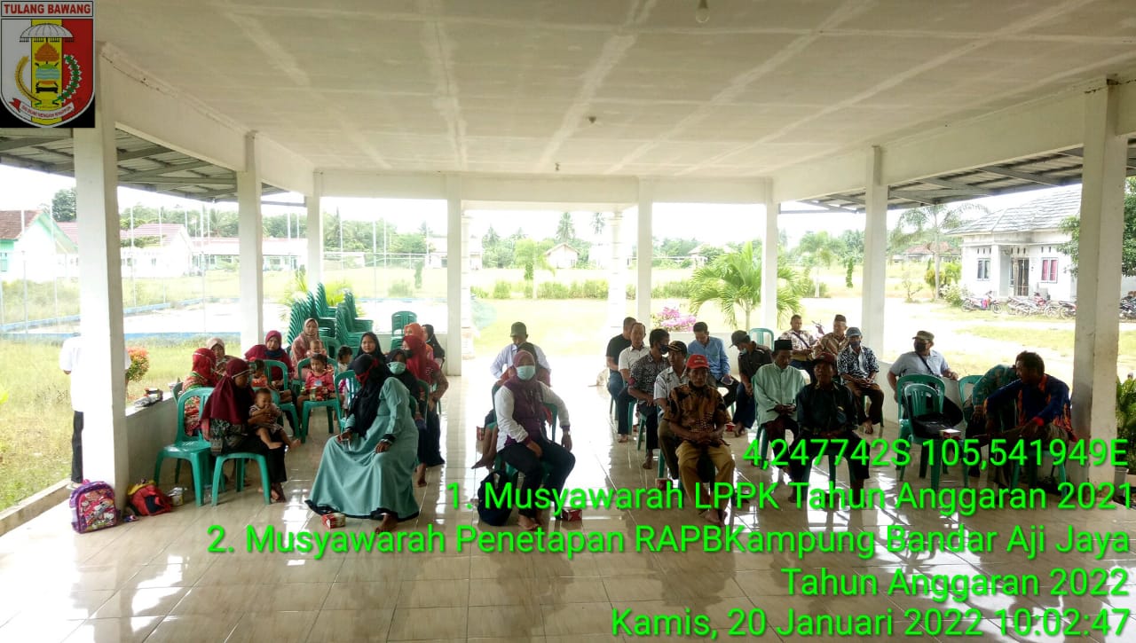 TULANGBAWANG – Kampung Bandaraji Jaya, Kecamatan Gedungaji, gelar Laporan Pemerintahan Kampung (Pemkam) penyelenggaraan APBKam tahun 2021 dan musyawarah pembentukan Rencana Anggaran Pendapatan Belanja Kampung (RAPBKam) Tahun 2022, Kegiatan itu digelar di Balai Kampung setempat, Kamis (20/01/2022).