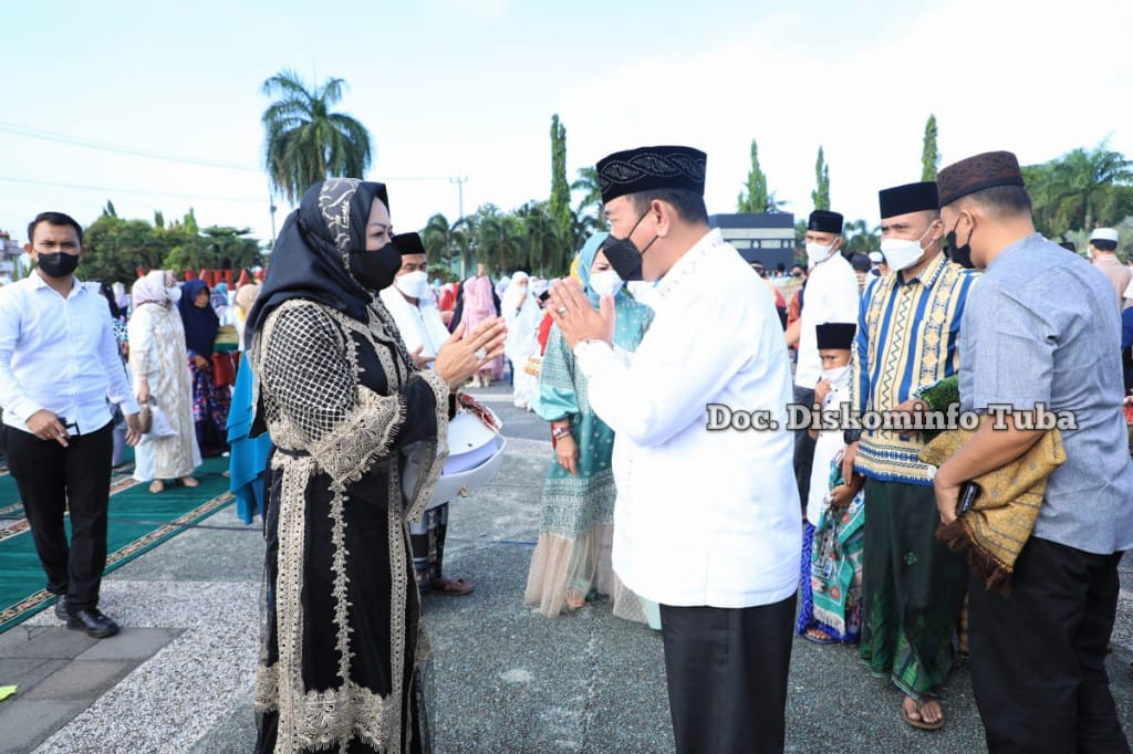 Pada pelaksanaan shalat Idul Fitri tersebut, Bupati juga bersama Sekretaris Daerah, Pejabat pimpinan tinggi pratama, Administrator dan Pejabat pengawas di lingkup Pemerintah kabupaten setempat.