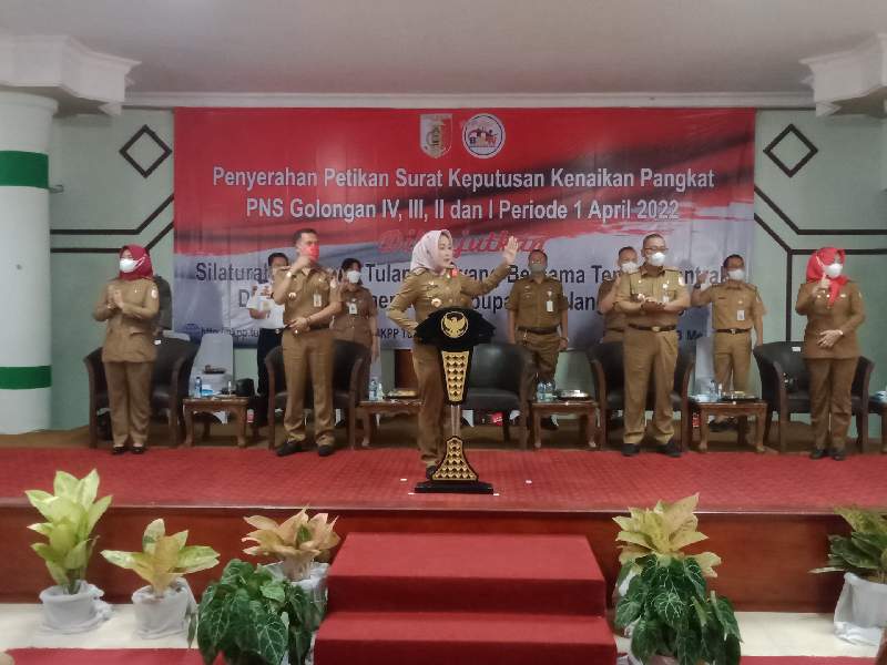 Bupati Winarti dalam sambutannya mengucapkan, selamat kepada para Pegawai Negeri Sipil (PNS) yang naik pangkat pada periode ini dan menanamkan dan terus meningkatkan etos serta kualitas kerja.