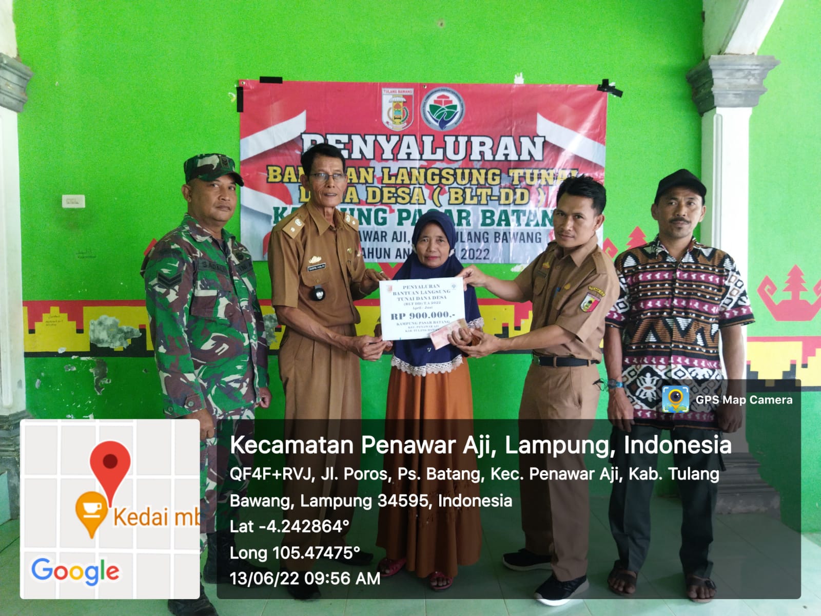 TULANGBAWANG – Pemerintah Kampung (Pemkam) Pasarbatang, Kecamatan Penawaraji, salurkan Bantuan Langsung Tunai Dana Desa (BLT-DD), kegiatan tersebut digelar di balai kampung setempat, Senin (13/06/2021).