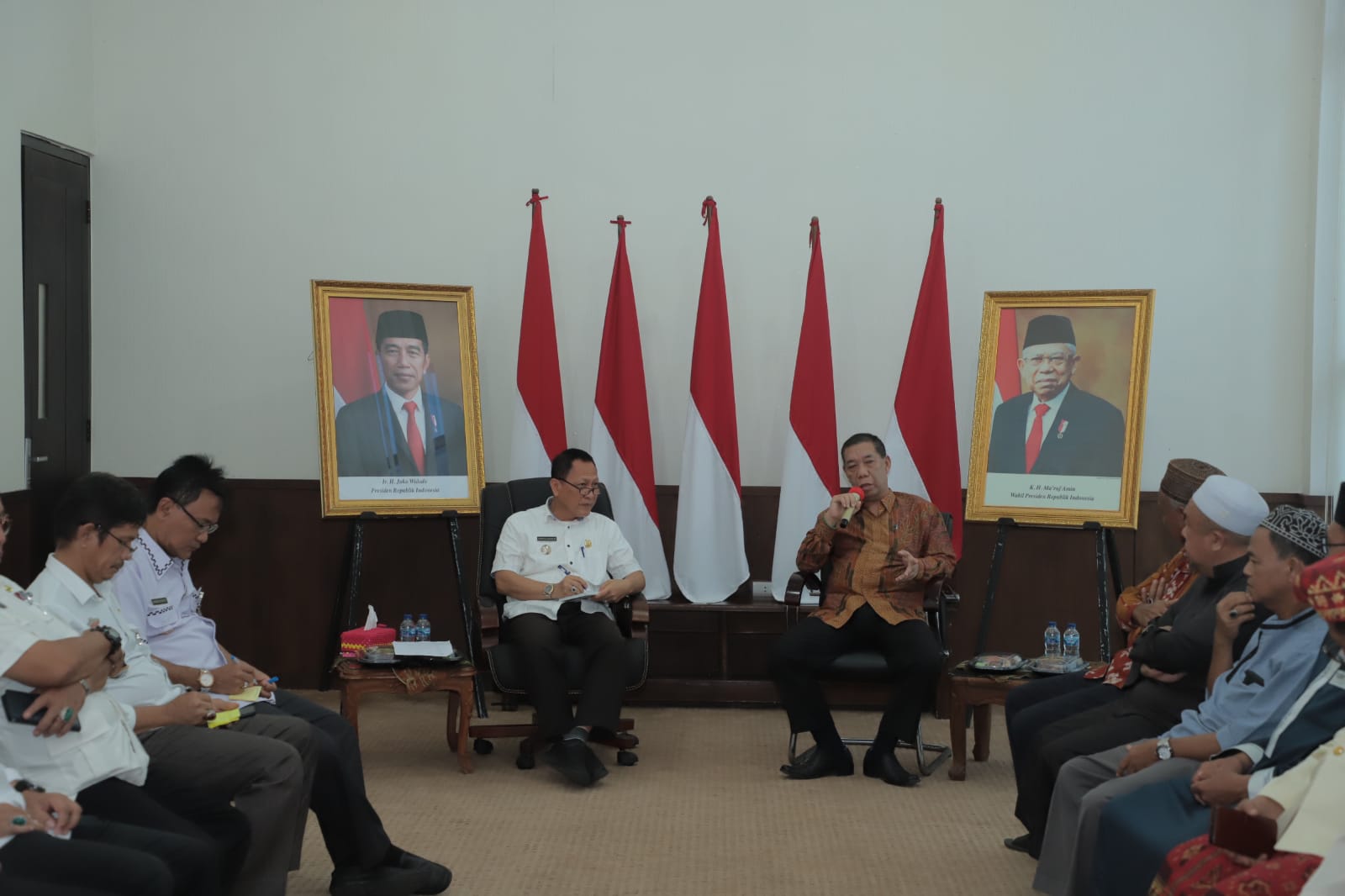 TULANGBAWANG – Tokoh Megou Pak Tulangbawang (Tuba) bersilaturahmi dengan Penjabat (Pj) Bupati Tuba, Qudrotul Ikhwan, kegiatan digelar di Ruang Rapat Utama (Rupama) kantor bupati setempat, Kamis, (29/12/2022).