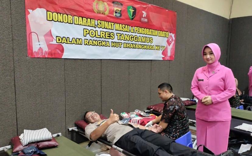 Donor darah bekerjasama dengan PMI Bandar Lampung dan diikuti personel Polres Tanggamus, TNI Kodim 0424 Tanggamus, Sat Pol PP, Dishub Tanggamus juga Bhayangkari PC Tanggamus.