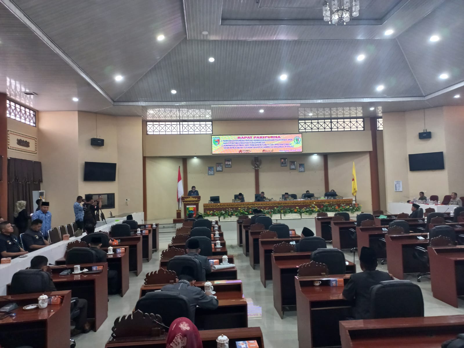 KOTAAGUNG – Dewan Perwakilan Rakyat Daerah (DPRD) Tanggamus menggelar sidang paripurna penyampaian laporan pertanggung jawaban (LKPj) Bupati Tanggamus Tahun 2022 dan penyampaian laporan hasil pembahasan Raperda Tahun 2023, di Ruang Sidang Sekretariat DPRD kabupaten setempat, Senin (19/06/2023).