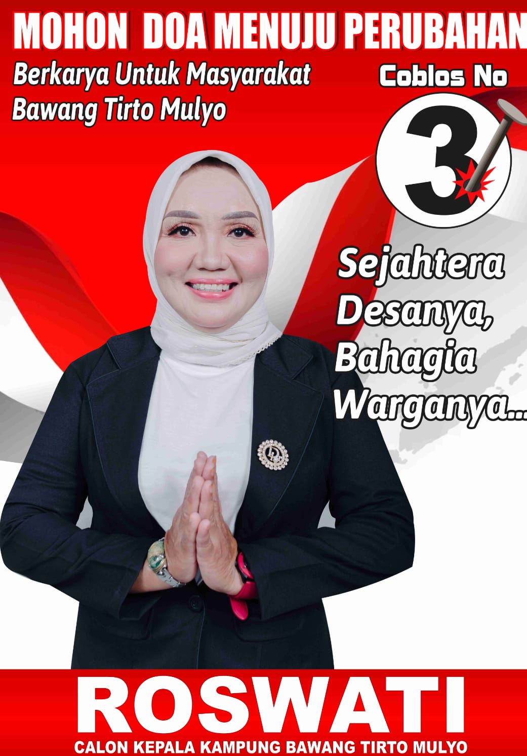 Roswati sebelumnya menjabat sebagai Kepala Kampung Kahuripan Dalam, Kecamatan Menggala Timur, Kabupaten Tulang selama 1 periode dan memiliki segudang prestasi demi kemajuan di kampungnya. Kini, Roswati maju sebagai calon Kepala Kampung Bawangtirto Mulyo Kecamatan Banjar Baru atas dukungan tokoh masyarakat, tokoh pemuda, dan tokoh agama setempat yang menginginkan perubahan nyata.