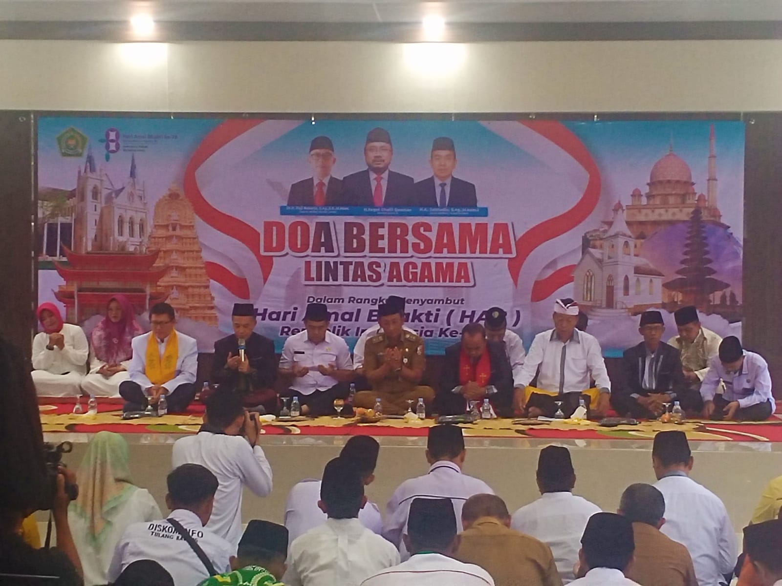 Dia menyebut, yang dimaksud doa bersama lintas agama yakni, masing-masing tokoh agama mewakili agamanya untuk berdoa dan diharapkan dengan doa bersama lintas agama Kabupaten Tulang Bawang dapat damai, aman, rukun dan sejahtera.