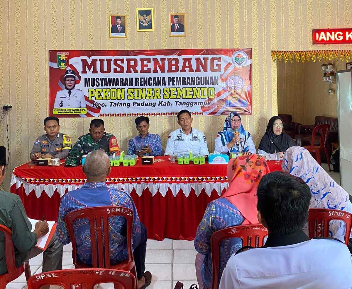 Kepala Pekon Sinarsemendo Yulistina Heryanti, mengatakan kegiatan Musrenbang tingkat pekon untuk mendengarkan dan menyampaikan usulan masyarakat setempat yang nantinya usulan itu dibawa ke tingkat Kabupaten, Provinsi, hingga Pusat untuk anggaran tahun 2025.
