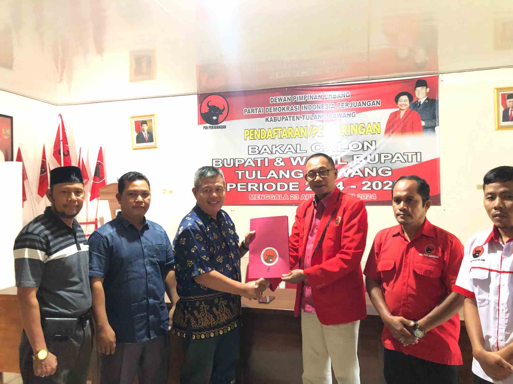 Terpisah, Sekretaris penerima pendaftaran bakal calon bupati (Bacalon) partai PDIP Tulangbawang, Bambang Semedi, menjelaskan, bahwa sejak dibukanya pendaftaran hingga saat ini terdapat lima orang yang mengambil formulir, yang mana itu semua Bacalon Bupati semua.