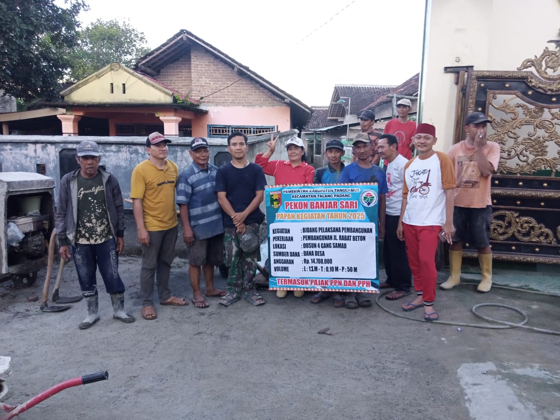 TANGGAMUS – Pemerintah Pekon Banjarsari, Kecamatan Talangpadang, Kabupaten Tanggamus, terus merealisasikan program pembangunan infrastruktur desa melalui Dana Desa Tahun Anggaran 2025. Salah satunya adalah pembangunan rabat beton di Dusun 4, yang menjadi akses penting masyarakat, termasuk jalur utama bagi pelajar menuju SMA Negeri 1 Talangpadang.