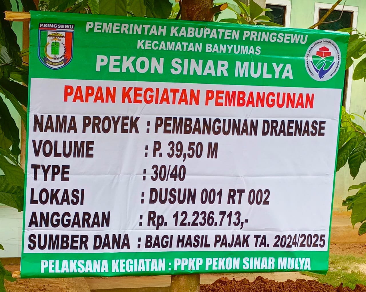 PRINGSEWU – Pemerintah Pekon Sinarmulya, Kecamatan Banyumas, Kabupaten Pringsewu, Lampung, telah menyelesaikan pembangunan drainase sepanjang 39,50, pembangunan drainase itu menggunakan anggaran bagi hasil pajak tahun 2024-2025 sebesar Rp12.236.713.