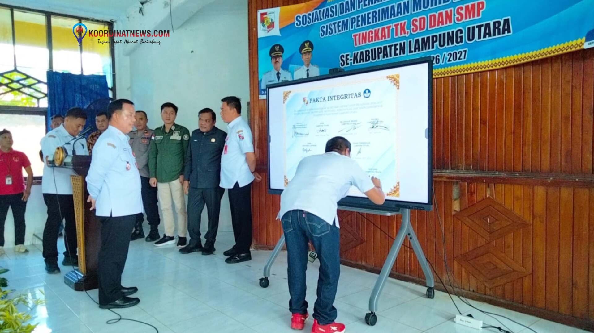 LAMPUNG UTARA | Koordinatnews.com – Dinas Pendidikan (Disdik) Kabupaten Lampung Utara resmi memulai tahapan Penerimaan Peserta Didik Baru (PPDB) melalui agenda Sosialisasi dan Penandatanganan Pakta Integritas Sistem Penerimaan Murid Baru (SPMB) tingkat TK, SD, dan SMP untuk Tahun Pelajaran 2026/2027. Acara ini berlangsung khidmat di Gedung Korpri Kotabumi pada Rabu (22/4/26).