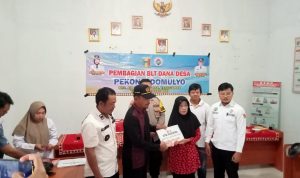 TANGGAMUS – Kepala Pekon (Kakon) Sidomulyo, Kacamatan Airnaningan, Kabupaten Tanggamus, Alamuddin salurkan bantuan langsung tunai dana desa (BLT-DD) Tahap II kepada 33