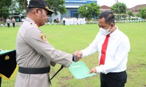 TULANGBAWANG – Polres Tulang Bawang, Polda Lampung, menggelar upacara pemberian penghargaan (reward) kepada puluhan personelnya yang dianggap telah berprestasi di dalam melaksanakan
