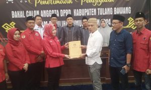 TULANGBAWANG – Partai Demokrasi Indonesia Perjuangan (PDIP) Kabupaten Tulangbawang daftarkan calon legislatif (caleg) untuk pemilihan umum (Pemilu) 2024 ke Komisi Pemilihan Umum