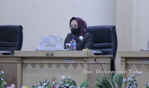 TULANGBAWANG – Bupati Tulangbawang, Winarti menghadiri rapat laporan khusus Rancangan Peraturan Daerah (Raperda) Kabupaten Tulangbawang (Tuba) yang digelar oleh Dewan Perwakilan Rakyat