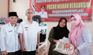 TALANGPADANG – Bupati Tanggamus Hj Dewi Handajani tinjau pasar murah bersubsidi, kegiatan digelar di Balai Pekon Talangpadang, Kecamatan Talangpadang, kabupaten setempat, Rabu