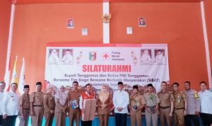 TANGGAMUS – Bupati Tanggamus Hj Dewi Handajani silaturrahmi dan halal bihalal dengan Palang Merah Indonesia (PMI) bersama Tim Siaga Bencana Berbasis Masyarakat