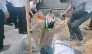 TANGGAMUS – Bupati Tanggamus Dewi Handajani melakukan peletakan batu pertama pembangunan Masjid Subulussalam, Pekon Sinarharapan, Kecamatan Talangpadang, kabupaten setempat, Sabtu (17/06/2023). Bupati