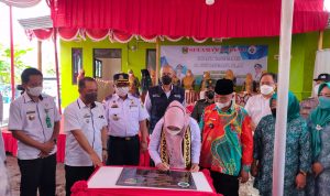 TANGGAMUS – Bupati Tanggamus Hj. Dewi Handajani, menghadiri dan resmikan gedung baru ketahanan pangan yang merupakan kegiatan Pemerintahan Pekon Terbaya, Kecamatan Kotaagung,