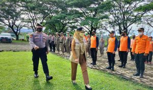 TANGGAMUS – Bupati Tanggamus Hj. Dewi Handajani, menjadi Pembina Apel Kesiapsiagaan Bencana Kabupaten Tanggamus Tahun 2022 yang digelar di Lapangan Pemkab setempat,