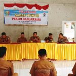 TALANGPADANG – Perlindungan Masyarakat (Linmas) Pekon Banjarsari, Kecamatan Talangpadang, Kabupaten Tanggamus, mengikuti Pelatihan Baris Berbaris (PBB) di kantor pekon setempat, Rabu (26/07/2023).